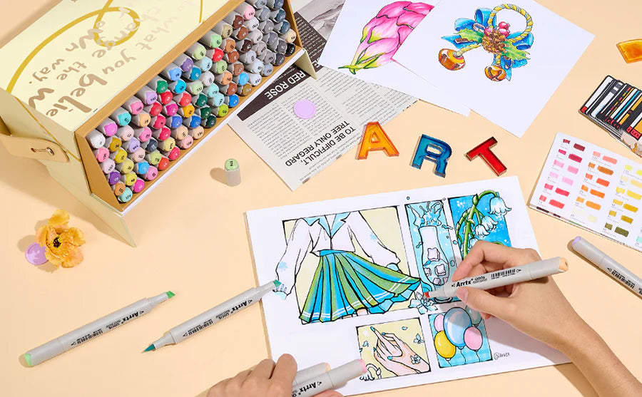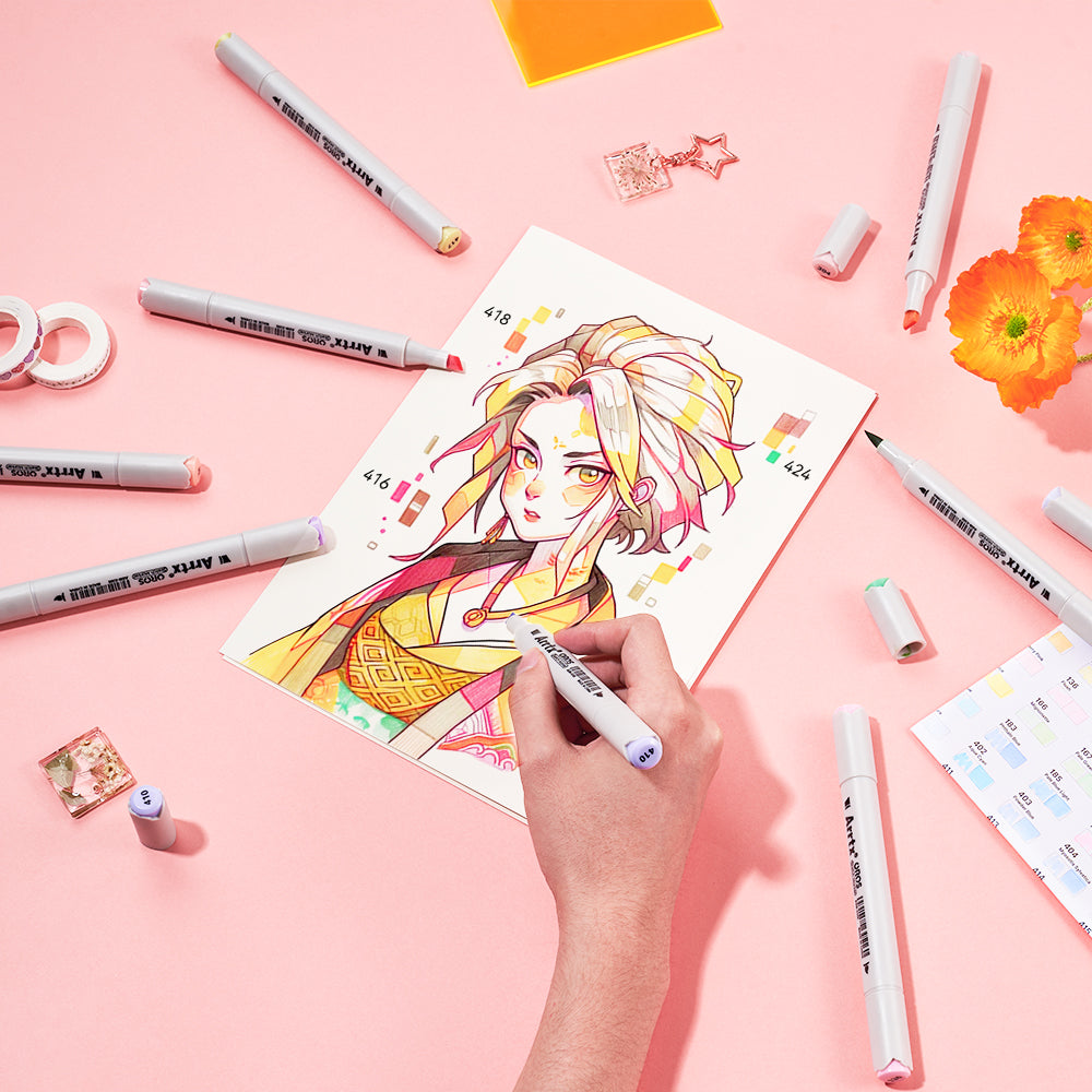 Маркеры серии Arrtx OROS используют прочные волоконные наконечники и высококачественные пигментированные чернила на спиртовой основе для получения ярких цветов.